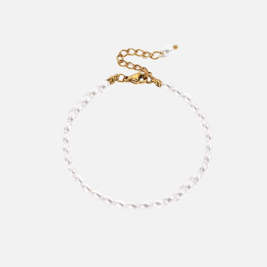Bracelet Perles Fines Blanches en Acier Inoxydable