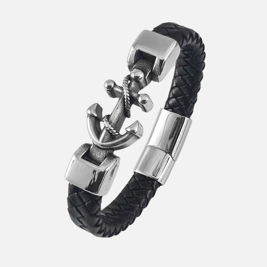 Bracelet Ancre Homme Tressé Noir – Acier Inoxydable