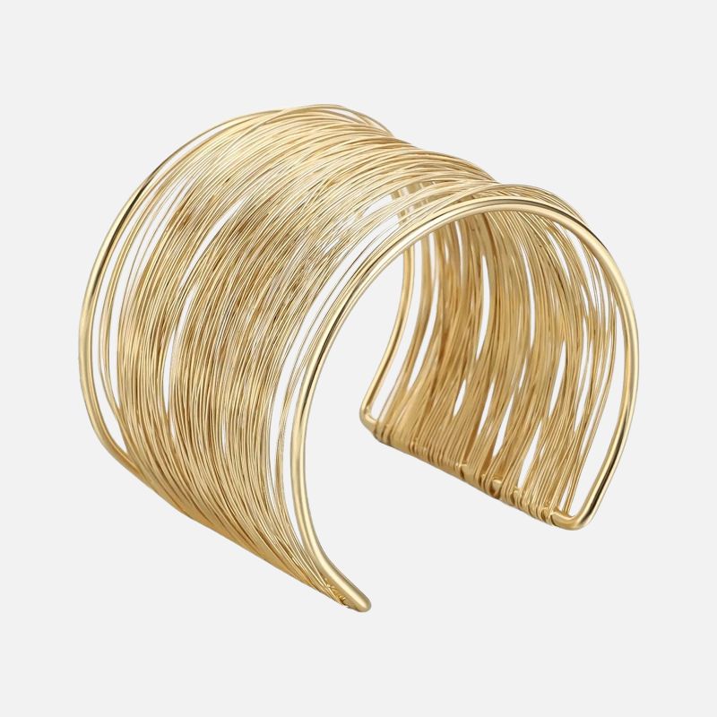 Avec son jeu de fils métalliques superposés, ce bracelet femme tendance dessine un relief vibrant, presque vivant. C’est une pièce qui donne du rythme à une tenue, un accent à une silhouette. Un bijou affirmé, à la fois couture et intemporel.