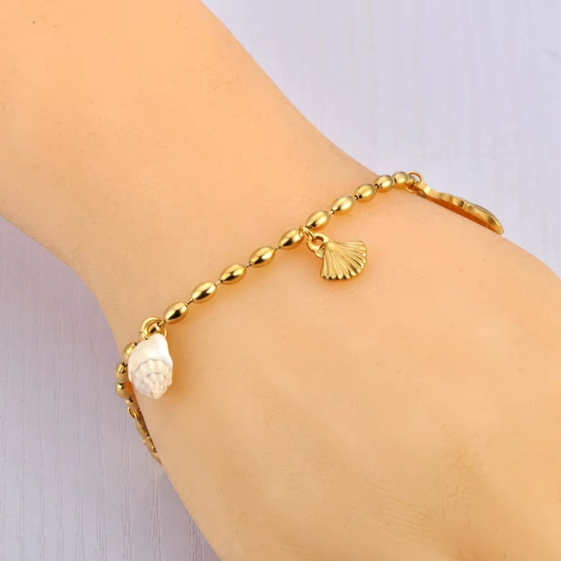 Bracelet Breloque en Acier Inoxydable Coquillages de Mer