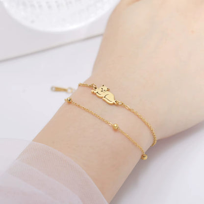 Le bracelet chat en acier inoxydable est un bijou qui mêle charme, résistance et délicatesse. Sa double chaîne élégante entoure le poignet avec légèreté, mettant en valeur un adorable chat finement découpé au centre. Ce bijou se révèle être un bracelet chat parfait pour ajouter une touche de tendresse.