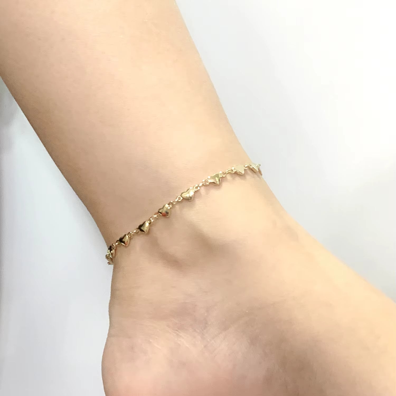 Bracelet Cheville Femme Coeurs en Acier Inoxydable