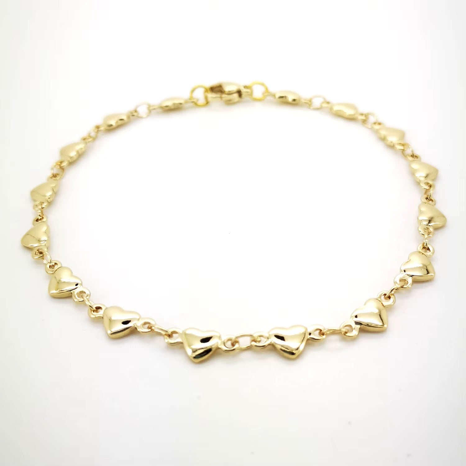 Ce bracelet femme mise sur la simplicité des formes et l’éclat du doré pour créer un look à la fois charmant et intemporel. Les petits cœurs captent la lumière, apportant une touche d’éclat délicate à la cheville. Porté avec des sandales ou pieds nus, il attire les regards sans jamais dominer l’ensemble. C’est l’accessoire qui complète une silhouette avec élégance et légèreté.