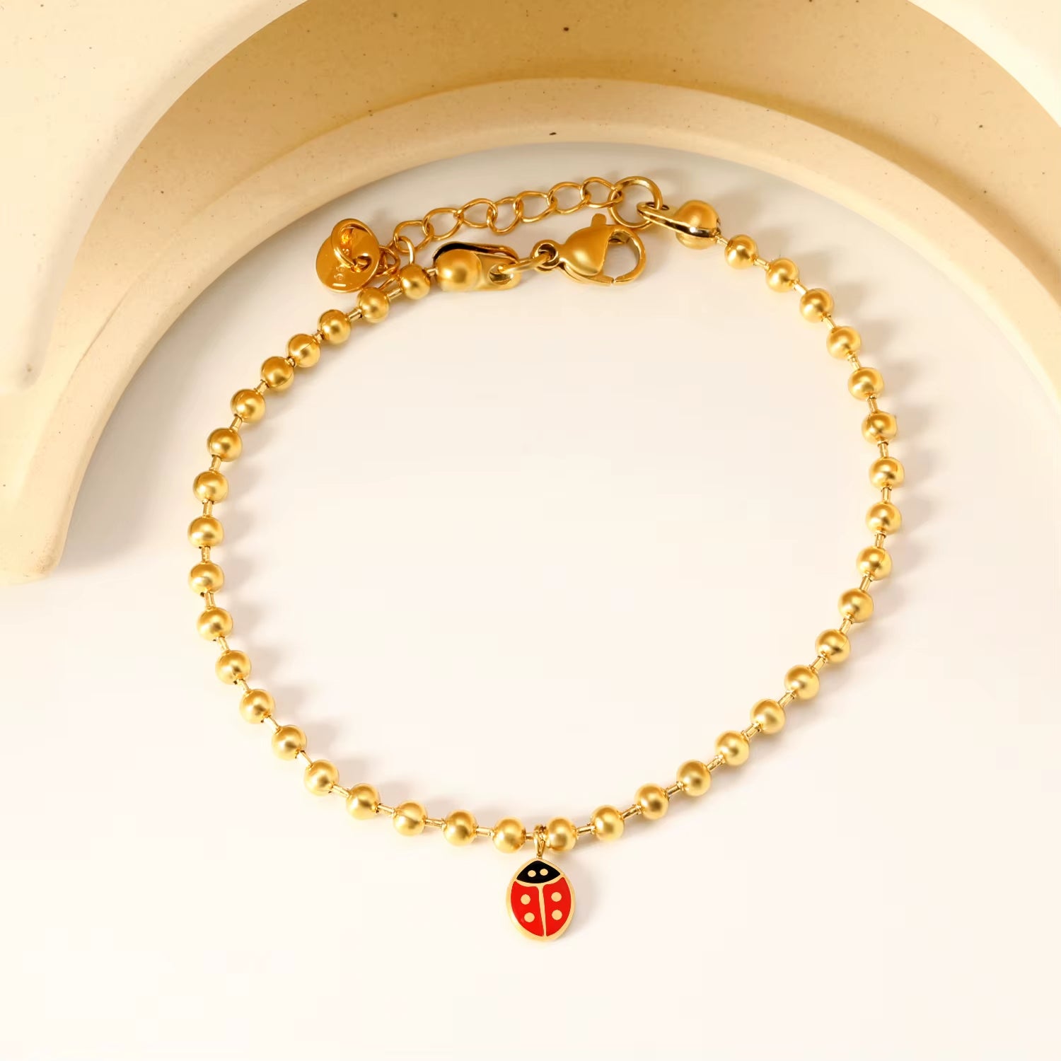 Le bracelet coccinelle perles dorées apporte une dose de fraîcheur et de positivité à votre style. Ce bijou coloré incarne la joie, la douceur et la chance, tout en restant sobre et élégant grâce à sa finition soignée. C’est le bracelet coccinelle parfait pour celles qui veulent un accessoire lumineux.