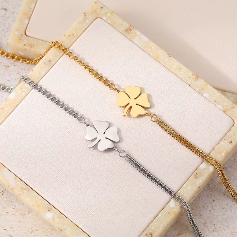 Bracelet Femme Trèfle Porte-Bonheur Acier Inoxydable