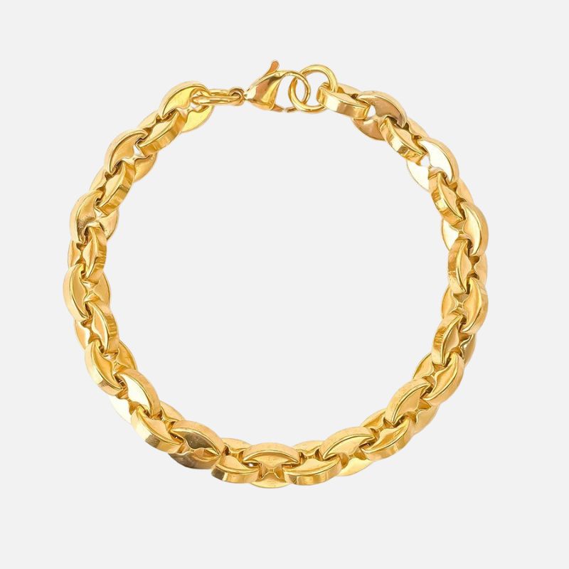 Ce bracelet graine de café homme revisite un symbole intemporel avec audace. Sa chaîne sculptée aux reflets dorés joue la carte du raffinement sans ostentation. À la fois puissant et équilibré, il s’offre à celui dont la présence est forte, le style affirmé, et l’élégance ancrée dans la simplicité.