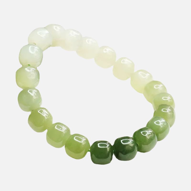 Le bracelet jade dégradé se démarque par une transition visuelle parfaitement équilibrée entre le blanc et le vert profond. Ce bracelet jade parfait ne cherche pas à être exubérant. Il repose sur un aspect simple, une pierre naturelle mise en valeur par un dégradé progressif.