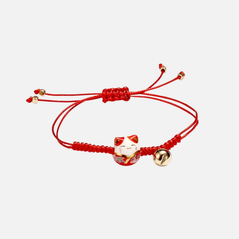 Bracelet Japonais Maneki Neko Tressé à Grelot