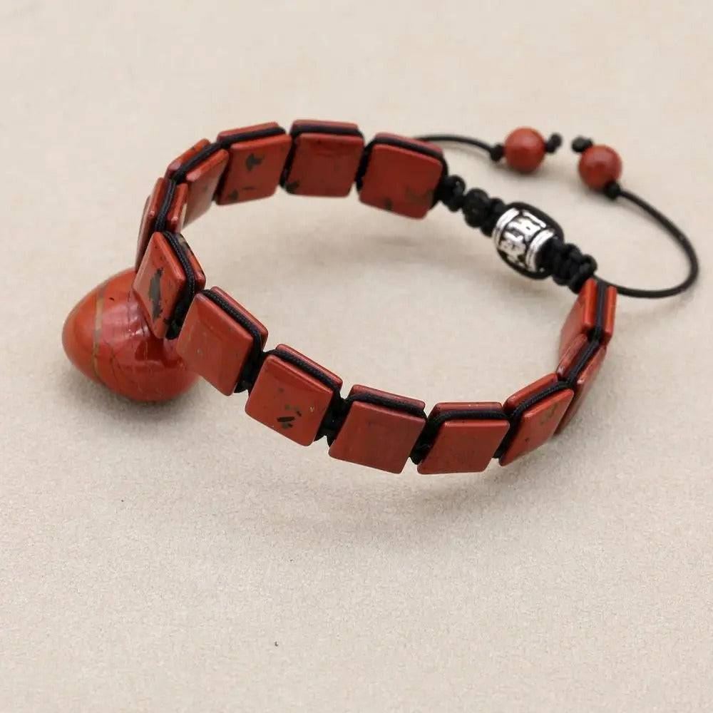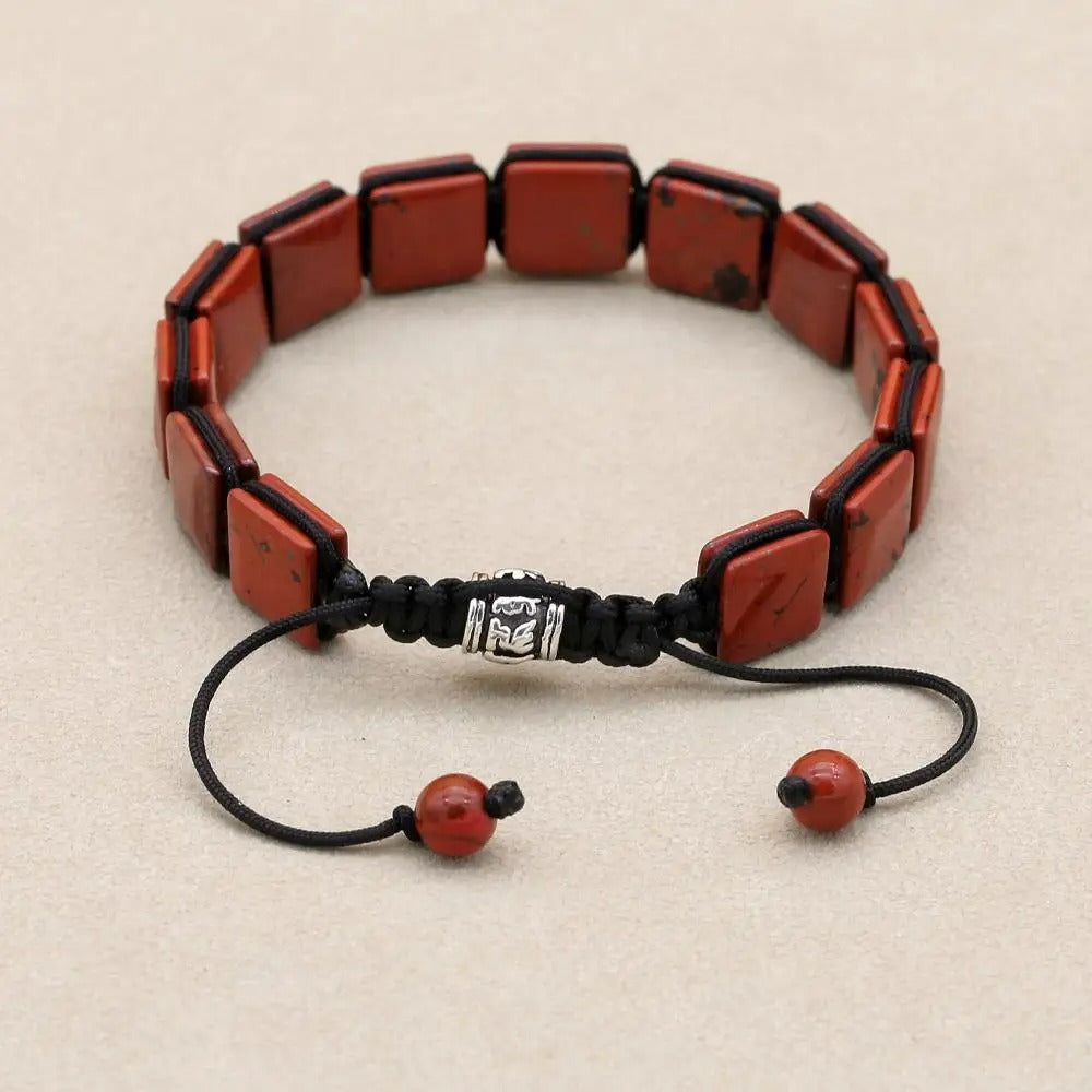 Ce bracelet jaspe rouge affirme sa singularité par ses lignes nettes et sa couleur brûlante. Avec ses pierres taillées en carrés parfaits, le bracelet jaspe rouge carré incarne un style assumé, structuré, élégant. Une présence forte, adoucie par la chaleur de la pierre naturelle.