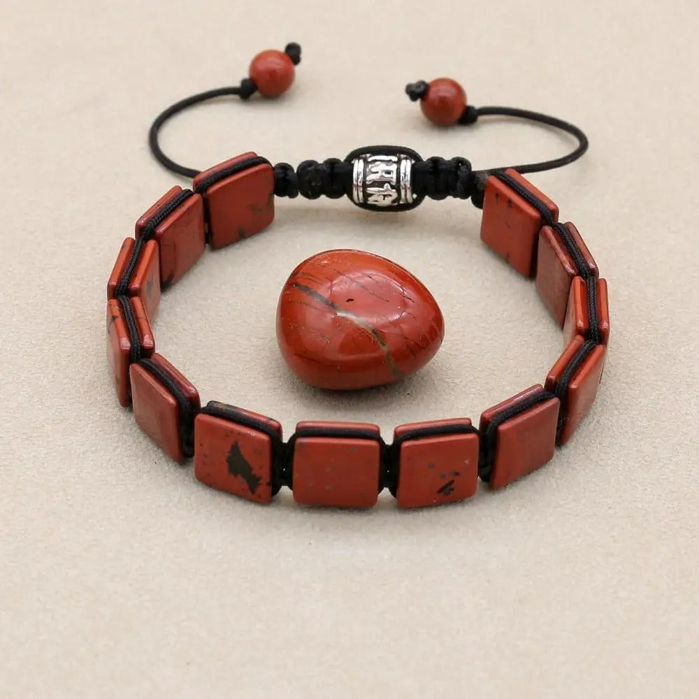 Authentique bracelet pierre naturelle, il allie symbolisme et matière. Le jaspe rouge porte l’énergie vitale et la stabilité. Sa forme géométrique révèle la structure, mais sa texture raconte l’instinct. Une harmonie entre maîtrise et émotion, entre forme et profondeur.