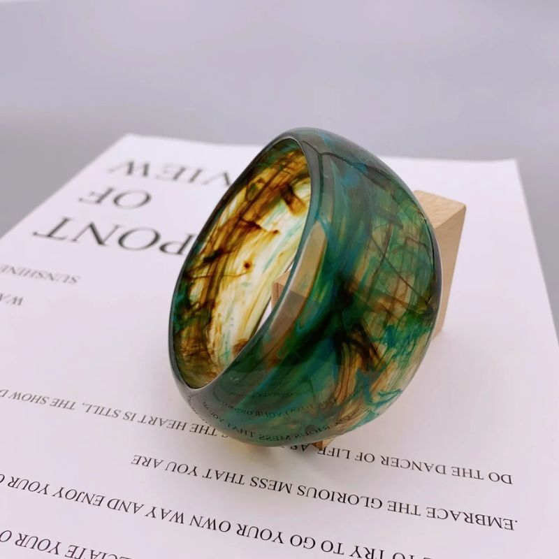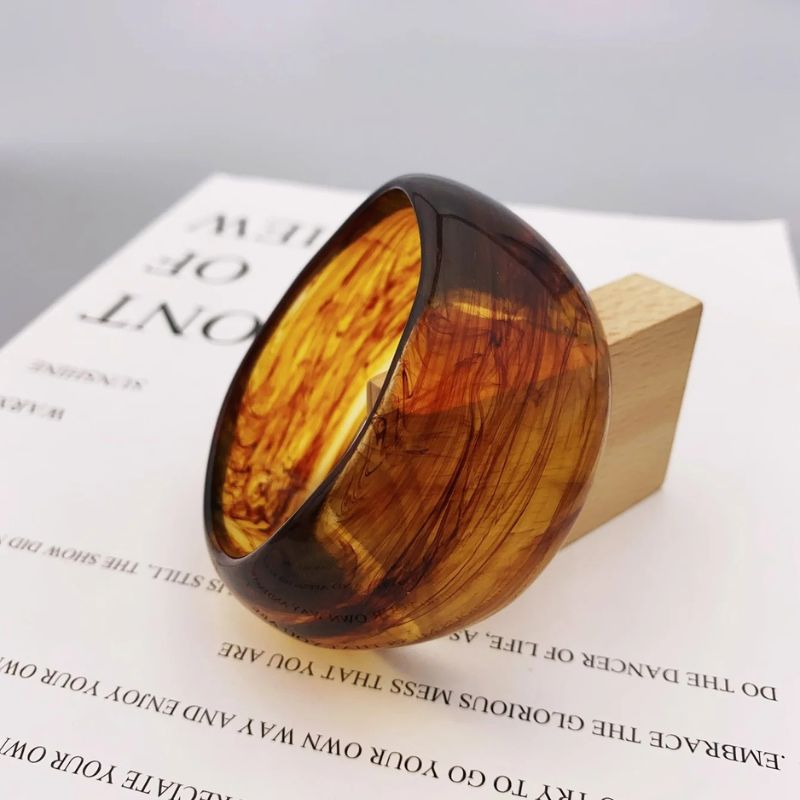 Un bracelet large femme qui capte la lumière et l’attention. Sa matière façon résine acrylique mêle profondeur visuelle, légèreté et confort. Chaque couleur – doré, brun ou vert – évoque une humeur, un style, une énergie. C’est le détail qui change tout, sans jamais en faire trop.