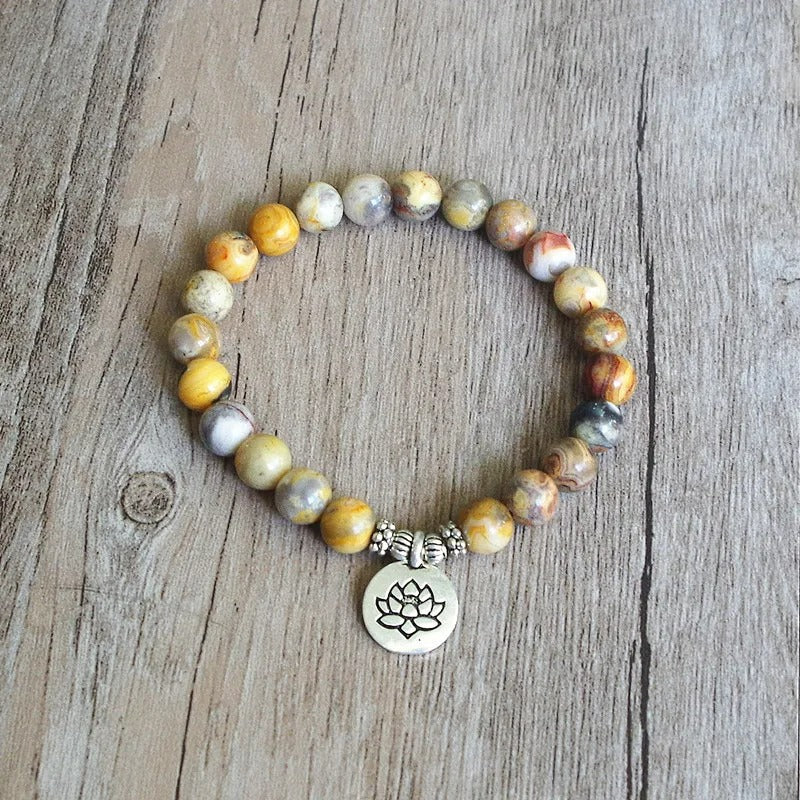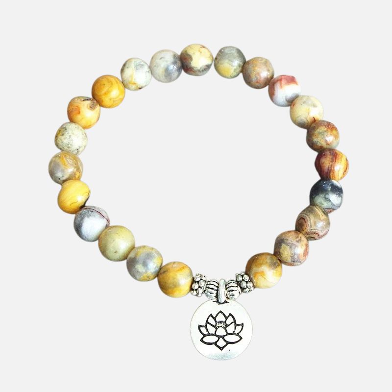 Ce bracelet lotus homme marie l’énergie brute des pierres naturelles et la douceur symbolique du lotus. Chaque perle, aux nuances chaudes et irrégulières, reflète un caractère unique. Un bijou pour hommes en quête de sens, de beauté organique et d’équilibre personnel à porter chaque jour.