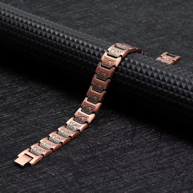 Le bracelet magnétique en cuivre style ethnique associe un style travaillé à une fonction magnétique intégrée dans un bijou qui ne passe pas inaperçu. Son motif gravé s’inspire des codes ethniques modernes tout en gardant une finition soignée. C’est un bracelet magnétique parfait.