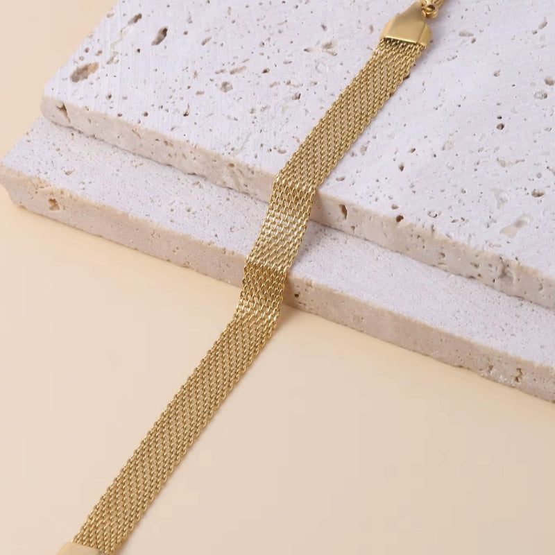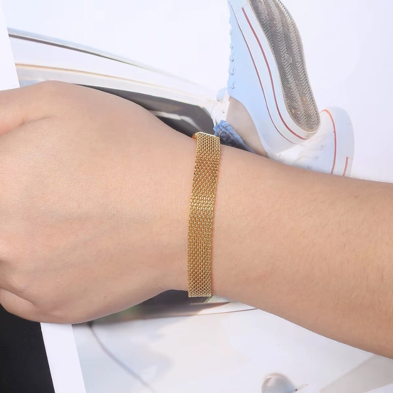Le bracelet maille fine et doré allie une esthétique sobre à une finition soignée qui en fait un bijou facile à porter au quotidien. Sa structure fine en acier inoxydable lui confère à la fois légèreté et résistance. C’est un bracelet maille parfait pour celles qui aiment les bijoux discrets.