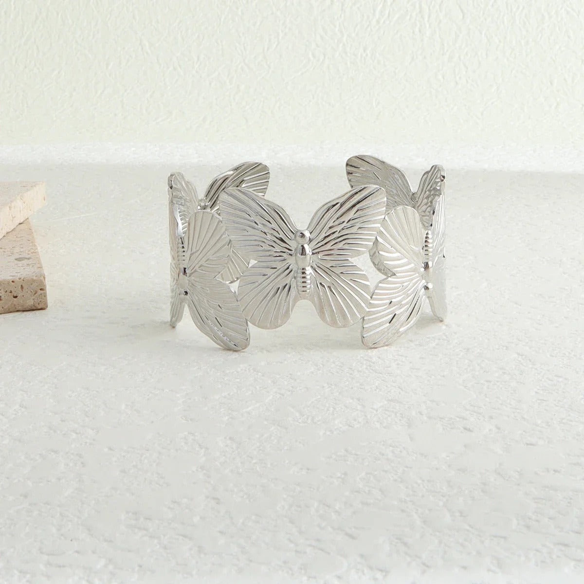 Bracelet Manchette Femme Papillon Acier Inoxydable