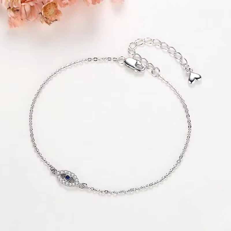 Bracelet Oeil Bleu Chaine Fine en Argent