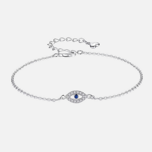 Bracelet Oeil Bleu Chaine Fine en Argent