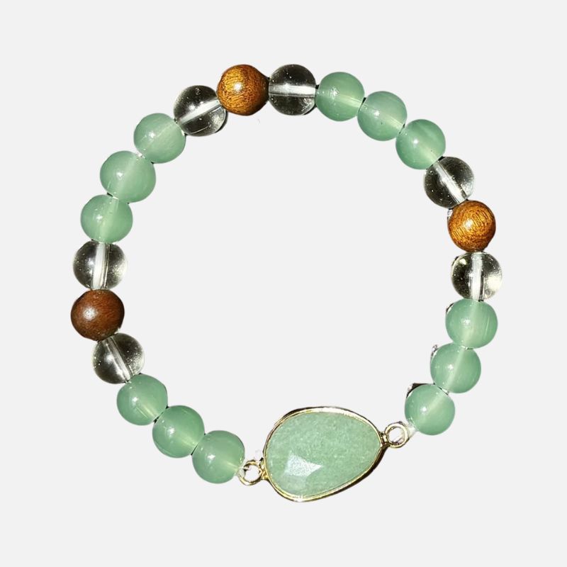 Ce bracelet perle repose sur des éléments soigneusement sélectionnés pour leur qualité et leur couleur uniforme. Chaque perle d’aventurine est polie pour refléter la lumière avec douceur, créant un effet brillant discret et élégant. L’ensemble du bracelet évoque la fraîcheur et la sérénité, tout en conservant une allure moderne.