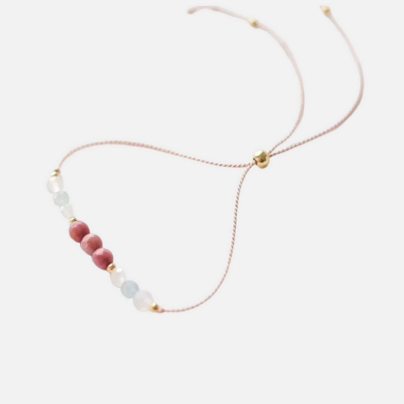 Façonné avec soin, ce bracelet pierre naturelle mêle quartz rose, aigue-marine et pierre de lune. Tout est choisi pour sa texture, sa nuance et sa sincérité. Un bijou vrai, pour les femmes qui recherchent plus qu’un effet : une sensation durable.