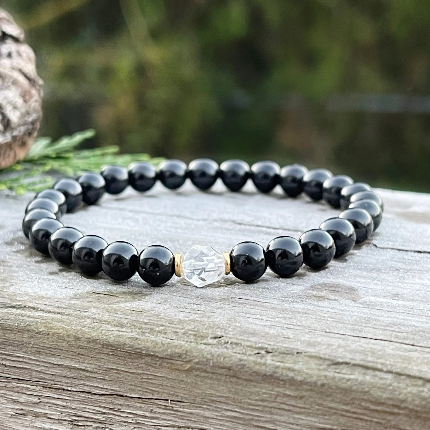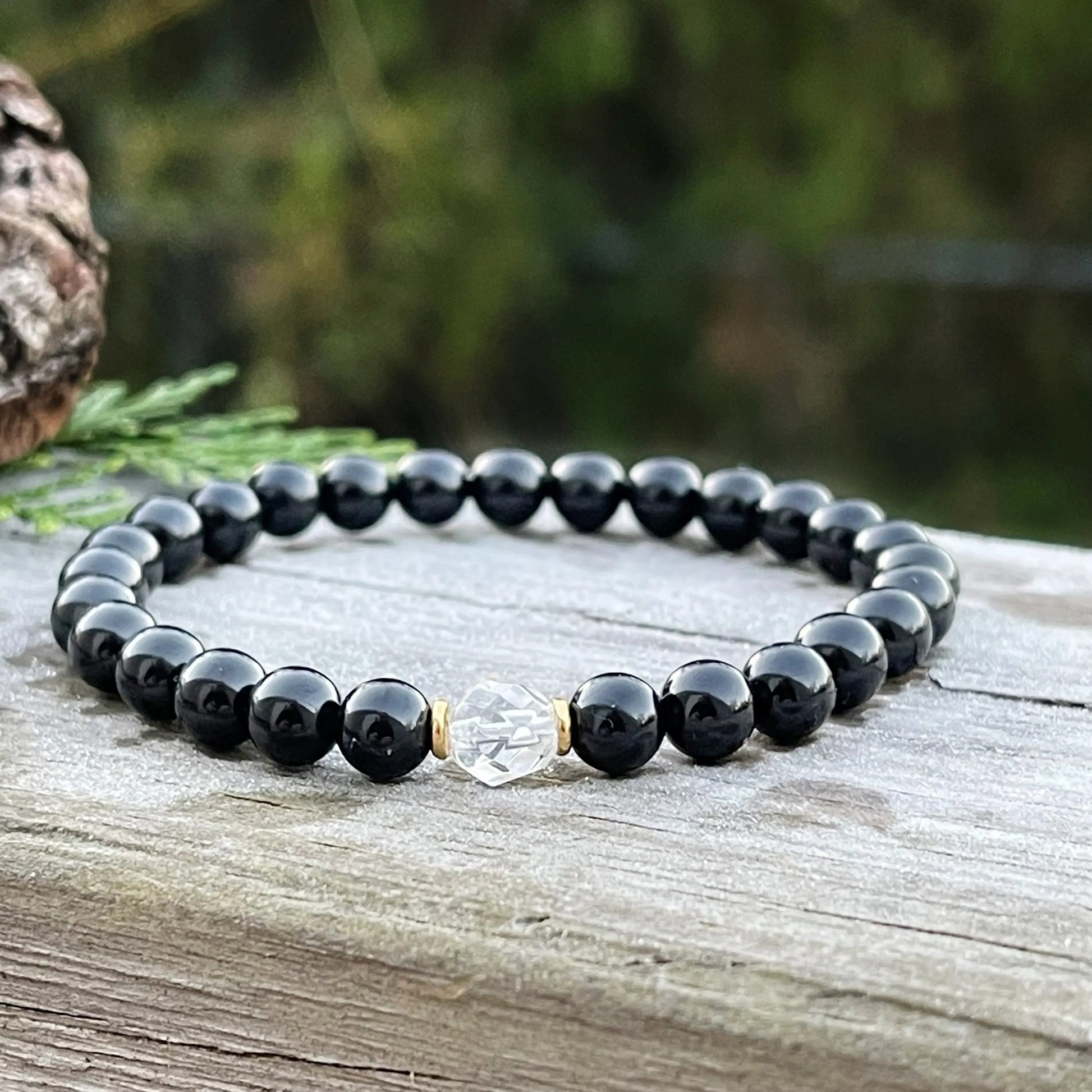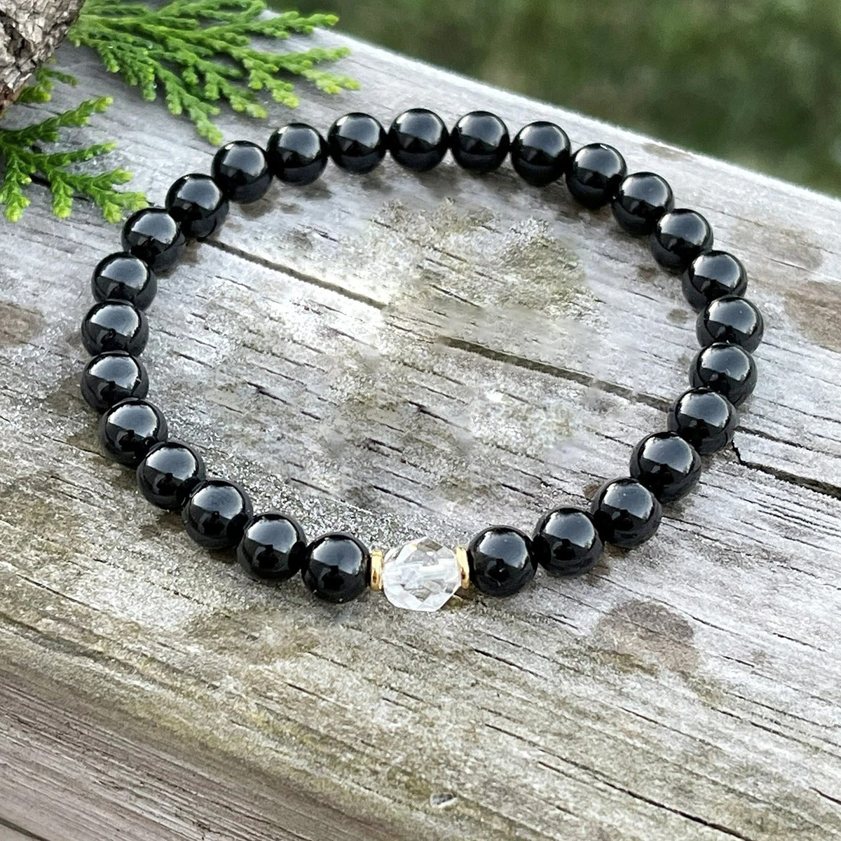 Le bracelet tourmaline de protection tisse un lien invisible entre l’ancrage et la délicatesse. Chaque perle noire absorbe les tensions, chaque éclat doré rappelle la lumière. Un bracelet tourmaline pensé pour rassurer sans alourdir, pour soutenir sans imposer. Un talisman discret, comme un murmure au poignet.